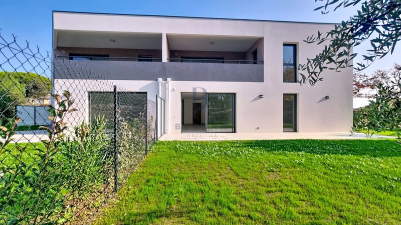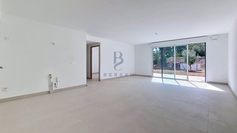 Composé d'un vaste séjour, lumineux permettant l'installation d'une cuisine et donnant sur une belle terrasse de 25 m² et son jardin de 250 m² exposé SUD et livré engazonné.