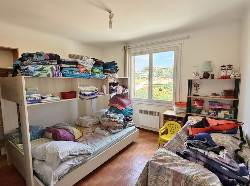 FREJUS, entre Tassigny et secteur Hôpital, vaste appartement 4 pièces 100m2 à rénover + terrasse 23m2 exposée au Sud, situé au 2ème et dernier étage sans ascenseur. L'appartement se compose d'un vaste hall d'entrée avec placard, un séjour-salon d'angle avec double exposition Sud et Est ouvrant sur la terrasse pour partie couverte, une cuisine avec coin repas attenante au séjour, un dégagement desservant une vaste chambre parentale de 15,75m2 ouvrant sur la terrasse ainsi de deux autres chambres de 12m2 et 13m2 chacune, une buanderie avec fenêtre, une salle de bains également avec fenêtre. Les menuisieries extérieures ont été changées et sont en PVC bicolore avec double vitrage. Un vaste garage avec mezzanine ainsi qu'une cave situés au rez-de-chaussée sont également vendus avec l'appartement et sont compris dans le prix de vente. Idéal pour jeune couple avec un famille. Proximité des premières commodités et pharmacie à pied. Petite copropriété composée de 14 lots ( y compris les caves) dont seulement 6 lots principaux d'habitation. Charges courantes annuelles : 170 EUR - Appartement actuellement loué 940 EUR/mois + provision de charges 20 EUR/mois - Fin de bail 11/04/2026 RETROUVEZ toutes nos annonces de biens à la vente, à la location à l'année, à la location de vacances ainsi que nos actualités directement sur notre site : www.af-immobilier.fr