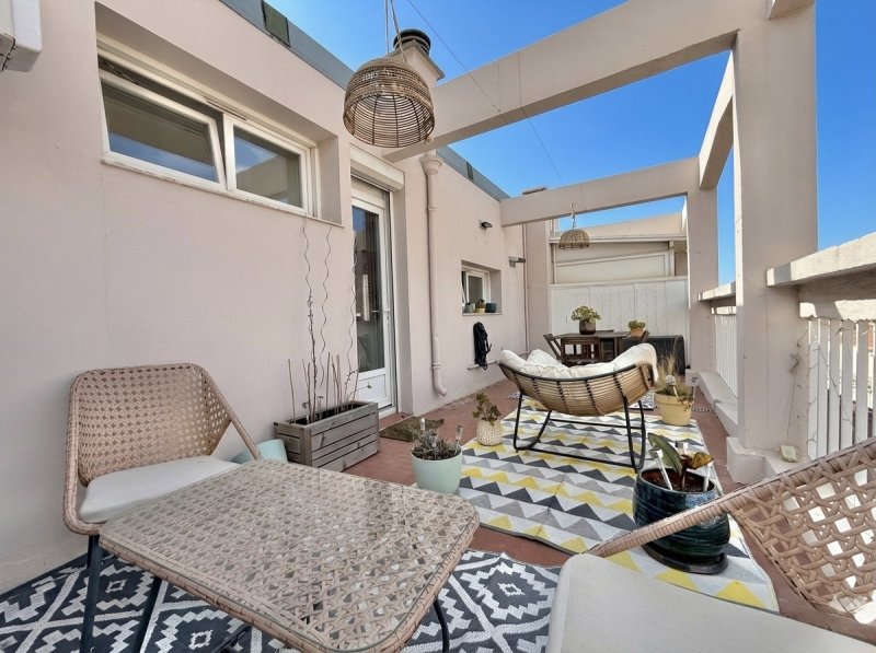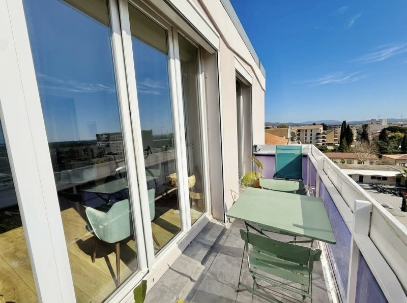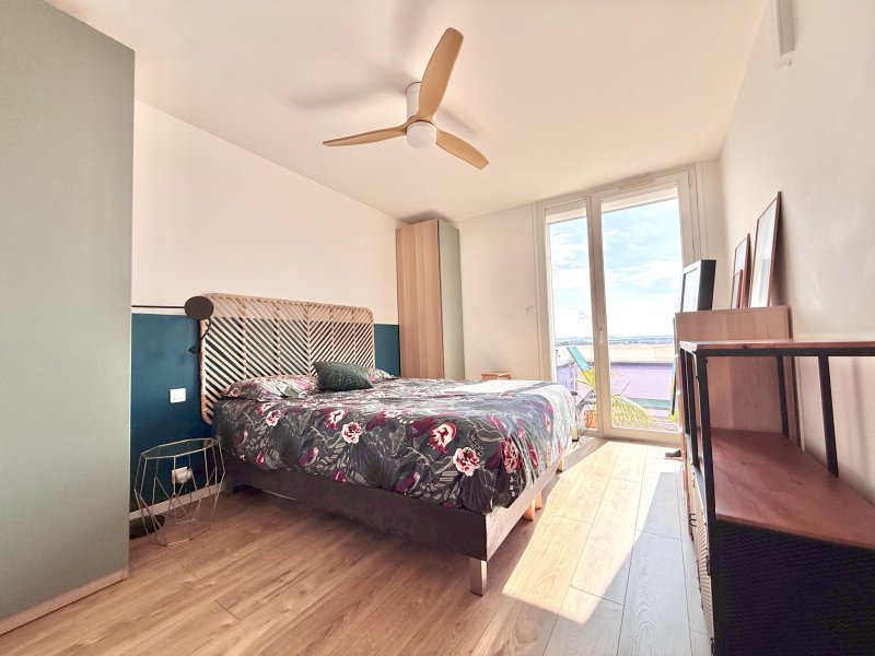 Situé au dernier étage d'une résidence avec ascenseur, en plein coeur du centre-ville, ce superbe appartement de type 2 traversant Nord-Sud séduit immédiatement par sa luminosité exceptionnelle et ses vues spectaculaires. Il ouvre sur une vaste terrasse de 20,50 m2 ainsi que un balcon de 5,50 m2, offrant une double perspective remarquable : d'un côté, une vue dominante sur le centre historique, et de l'autre un horizon dégagé s'étendant jusqu'à la mer. Baigné de lumière tout au long de la journée, l'appartement se présente en excellent état et bénéficie de prestations contemporaines de qualité : cuisine aménagée, double vitrage, climatisation réversible et volets roulants électriques. Un garage ainsi qu'une cave complètent ce bien rare, idéalement situé, alliant confort moderne, emplacement privilégié et vues d'exception.