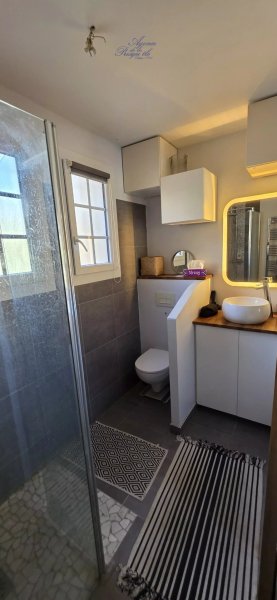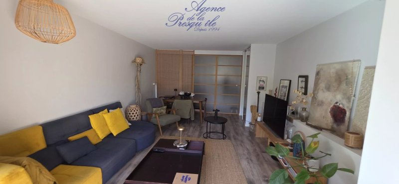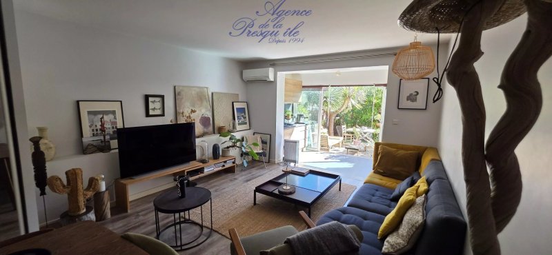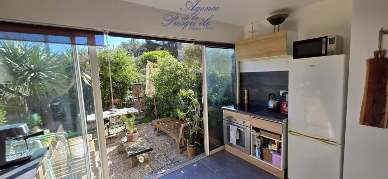 A mi-chemin entre le village et les plages, découvrez sans tarder ce grand studio avec coin nuit fermé en rez de chaussée.