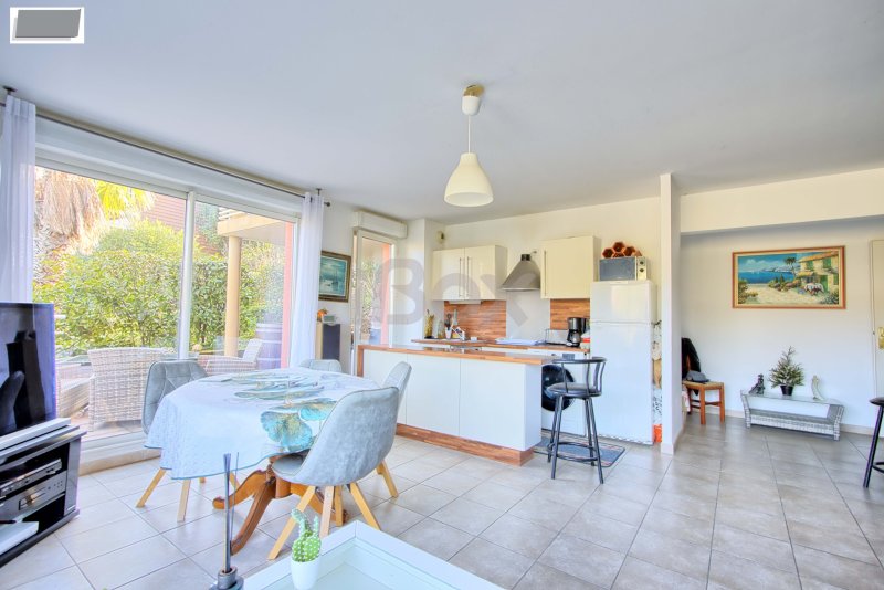 Situé dans une copropriété récente sécurisé avec piscine, appartement de type 3 d'une superficie de 68 m2 avec terrasse de 18m2. Il se compose d'une entrée, beau séjour d'angle avec cuisine ouverte donnant sur jolie terrasse, 2 chambres, salle de bains, wc. Nombreux rangements. L'appartement bénéficie d'un box fermé de 19m2, un parking pmr extérieur et d'une cave. Appartement au calme absolu bénéficiant d'une jolie vue dégagée. Centre ville à pieds!
