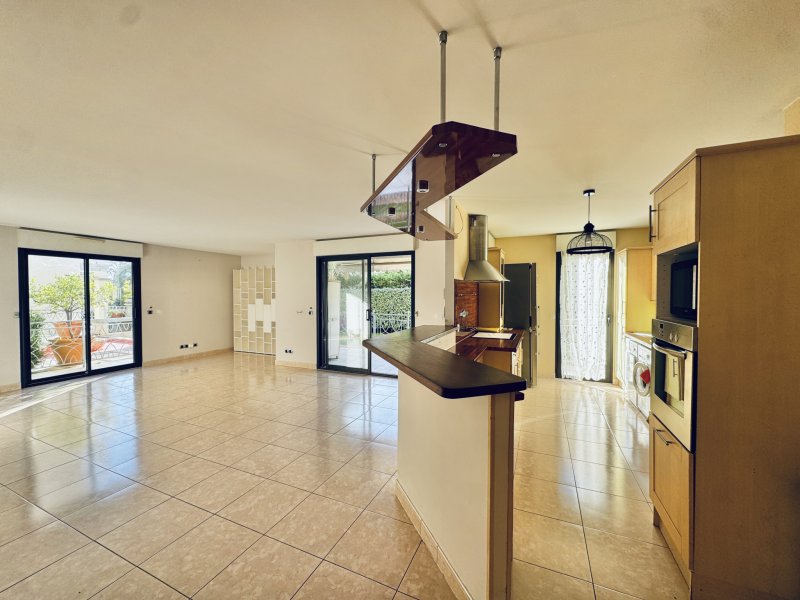 Idéalement situé en plein centre dans une belle résidence de standing ravalée récemment, au calme, très bel appartement de type 4 de 107.41 m2 ouvrant sur une grande terrasse Sud et Est de 40.30 m2 et offrant une belle pièce de vie avec cuisine américaine équipée. Trois chambres dont une suite parentale avec salle d'eau, salle de bains, rangements et 2 WC. Prestations de qualité. Garage en sous-sol.