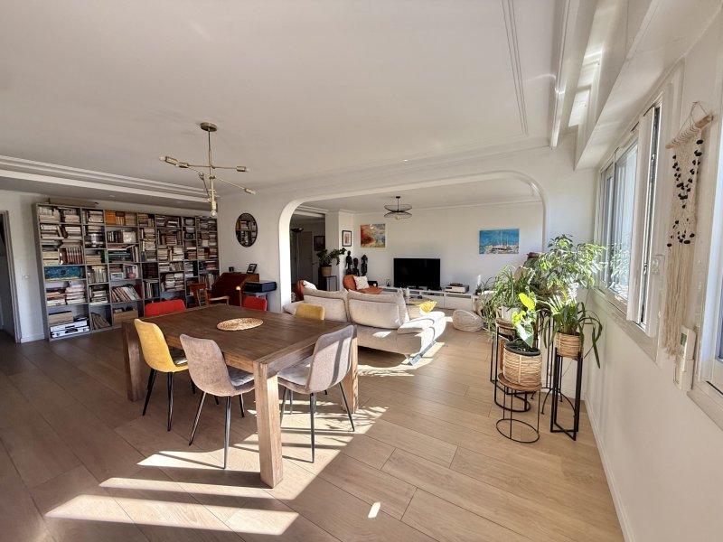 Situé au dernier étage d'un immeuble sécurisé avec ascenseur, cet appartement traversant de 146,64 m2 séduit par ses espaces lumineux et son excellent état d'entretien. L'espace de vie, d'une superficie de plus de 60 m2, offre une ambiance élégante et conviviale, sublimée par une cuisine contemporaine entièrement équipée avec cellier attenant. La partie nuit accueille trois chambres confortables, deux salles d'eau, un dressing sur mesure ainsi que de nombreux rangements. Les finitions soignées, la luminosité omniprésente et la proximité immédiate des commodités confèrent à ce bien un confort de vie agréable. Un grand garage en sous-sol complète cet ensemble.