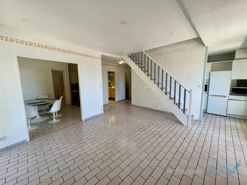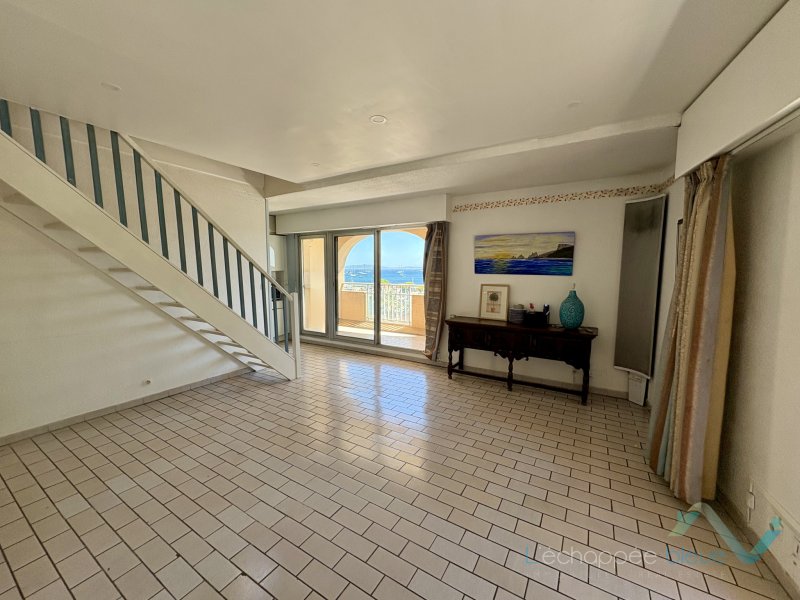 SOUS COMPROMIS : Rare à la vente Appartement dernier étage avec vue mer sur le port de Hyères Découvrez ce superbe appartement de type 3/4 situé au dernier étage, offrant une surface habitable d'environ 115 m2 et une vue imprenable sur la mer et le port de Hyères. L'espace principal se compose d'une vaste pièce de vie lumineuse, d'une cuisine semi-ouverte, le tout s'ouvrant sur deux belles terrasses couvertes : l'une exposée plein sud avec une très belle vue sur la mer et le port, l'autre côté ouest pour profiter des couchers de soleil. Sur ce même niveau, vous trouverez une suite parentale climatisée avec salle de bains, WC, coin kitchenette et un balcon côté ouest. À l'étage, une grande mezzanine d'environ 40 m2 au sol, pouvant être aménagée en chambres, donne accès à une magnifique terrasse de 40 m2 avec vue dégagée sur mer et les iles. Possibilité Double garage en sous-sol avec électricité en sup. Prévoir des travaux de réaménagement et de modernisation, mais le potentiel est remarquable comme la vue. Un bien rare sur le secteur, à visiter sans tarder ! Pour plus d'informations ou oragniser une visite, vous pouvez contacter M. Christophe ALVES au 07 62 55 70 01. Les informations sur les risques auxquels ce bien est exposé sont disponibles sur le site Géorisques : https://www.georisques.gouv.fr/