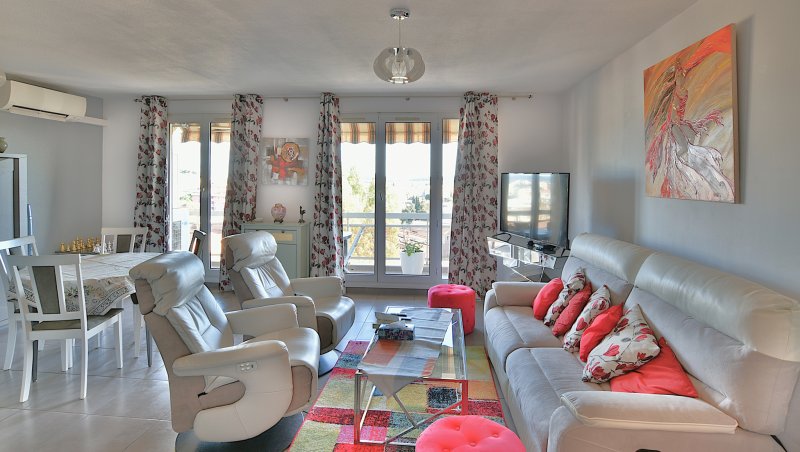Situé dans la résidence recherchée 'L'ORÉE DE LA GARDE' : vaste appartement de 90m2 habitables (82,15m2 'loi carrez') situé au 3ème étage avec ascenseur. Exposé sud/est, il bénéficie d'une jolie vue dégagée vers La garde et son rocher et d'une belle luminosité. Séjour / cuisine ouverte de 37,15m2 donnant sur le balcon de 10m2 2 belles chambres de 12m2 et 11,45m2 Salle d'eau avec douche italienne de 10,15m2 ! Nombreux rangements. Double vitrage - volets roulants électriques - climatisation. La résidence 'lOrée de La Garde' est bien entretenue avec un vaste parking collectif devant l'immeuble. Cave de 3,40m2. Charges raisonnables de 135 EUR / mois incluant l'eau froide taxe foncière 2025 : 1971 EUR