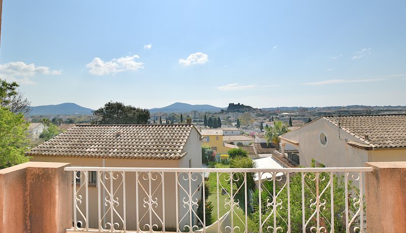 Dans une villa composée de deux appartements : T5 duplex totalisant 134,20m2 loi Carrez (152m2 de plancher) 4 chambres dont 3 au 1er niveau, cuisine meublée, séjour lumineux avec balcon. Vue panoramique sur La Garde et son rocher. Terrasse et jardin côté nord - 2 emplacements de stationnement.