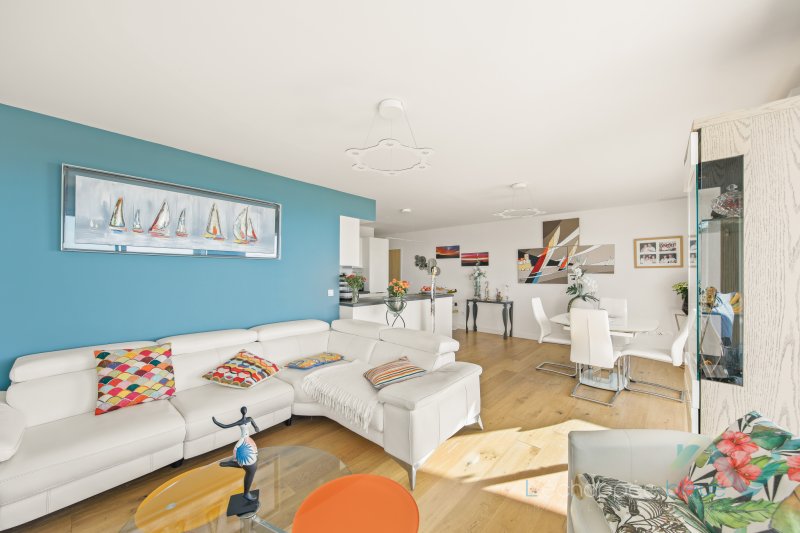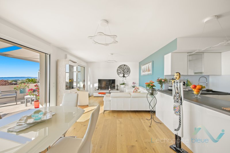Un appartement de standing de 75 m2 dans résidence de 2018, situé au 3ème et dernier étage d'un immeuble face à la mer avec terrasse et vendu avec un box fermé ainsi qu'une place de parking- un havre de lumière et de confort Au dernier étage d'une résidence contemporaine de 2018, un appartement d'exception s'ouvre à vous comme une parenthèse enchantée. Niché au 3eétage, il surplombe les flots azurés, offrant à ses occupants un panorama à couper le souffle : la mer scintillante et, au loin, les îles d'Hyères comme un mirage paisible. Dès l'entrée, le ton est donné. L'espace de 75 m2 s'ouvre avec fluidité : une cuisine moderne, discrètement intégrée, se fond dans un vaste séjour baigné de lumière. Les larges baies vitrées laissent entrer le soleil du Sud, jouant sur les volumes avec élégance et chaleur. La salle à manger et le salon forment un espace de vie harmonieux, conçu pour le confort autant que pour la contemplation. Côté nuit, deux chambres aux lignes épurées vous accueillent, chacune dotée de rangements astucieusement intégrés. Une salle de douche à l'allure contemporaine, des toilettes séparées avec lave-mains et branchement pour lave-linge, ainsi qu'un placard à balais viennent parfaire l'ensemble, dans une logique de fonctionnalité discrète. Le confort est total, avec une climatisation réversible gainée diffusant une fraîcheur douce ou une chaleur enveloppante selon les saisons. À l'extérieur, la magie continue : une large terrasse prolonge l'espace de vie. Orientée plein sud, elle est protégée à l'est et à l'ouest par des vitres teintées, préservant l'intimité tout en laissant intacte la vue majestueuse. Deux stores bannes électriques permettent d'apprivoiser le soleil, pour des moments de détente à toute heure. L'appartement est vendu avec un box fermé, véritable cocon pour votre véhicule, ainsi qu'une place de stationnement pour vos invités. Un bien rare, aux prestations haut de gamme, où luxe discret rime avec art de vivre. Les informations sur les risques auxquels ce bien est exposé sont disponibles sur le site Géorisques https://www.georisques.gouv.fr