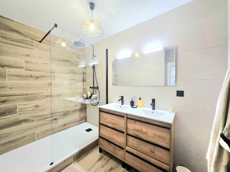 Idéalement situé à Mar Vivo, à seulement 15 minutes à pied de la plage, cet appartement de type 3 se trouve au deuxième et dernier étage d'une petite résidence au calme. Entièrement rénové avec goût, il offre une superficie de 64 m2 comprenant une grande pièce de vie lumineuse de près de 35 m2 avec une cuisine neuve équipée ouverte sur le séjour. Le séjour s'ouvre sur une belle terrasse de 12 m2 exposée plein sud, sans aucun vis-à-vis. L'appartement dispose de deux chambres, d'une salle d'eau moderne, et bénéficie d'une place de parking privative. Aucun travaux à prévoir. Un bien rare dans le secteur, idéal pour une résidence principale, secondaire ou un investissement locatif. À visiter sans tarder.