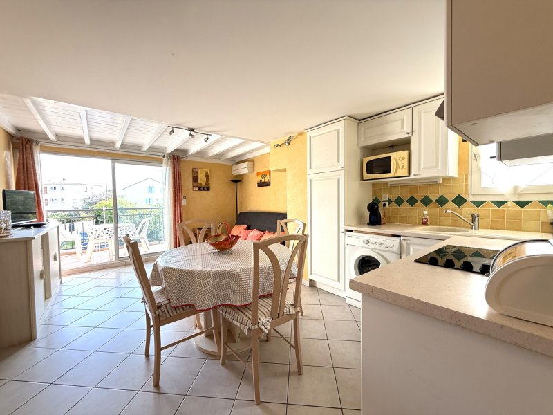 RARE SUR LE SECTEUR !!! Sur le secteur de Tamaris, dans résidence sécurisée avec piscine collective, à proximité immédiate de la corniche et à 3 minutes de la plage des Sablettes, nous vous proposons ce charmant T3 en duplex situé au premier et dernier étage. D'une superficie d'environ 39m2, il se compose au RDC d'unebelle pièce de vie avec cuisine intégrée et une salle d'eau / WC. A l'étage, vous trouverez deux chambres et un WC. Le séjour donne accès à une spacieuse terrasse qui ravira vos étés. L'appartement dispose de nombreux rangements. Il est équipé de la climatisation réversible. L'appartement est propre et ne nécessite pas de gros travaux (éventuellement un peu de rafraichissement dans la salle d'eau). Une place de parking privative complète ce bien. Idéal pied à terre, investissement locatif !!! A proximité des commodités, écoles, commerces, transports et plages. A visiter rapidement !