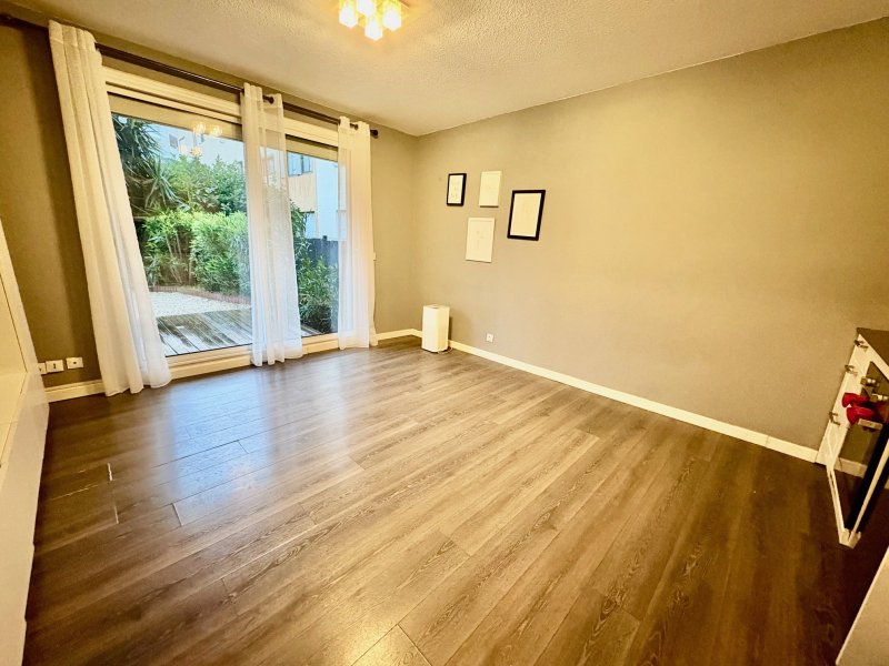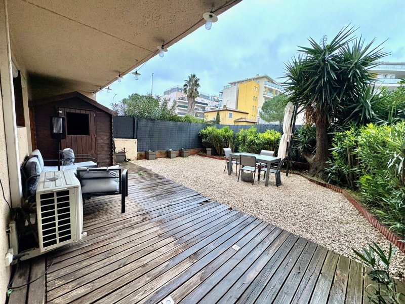 Véritable coup de coeur pour cet appartement traversant situé dans une résidence fermée avec sa place de parking privative Il est composé d' un hall, d' une pièce à vivre avec cuisine aménagée donnant sur la terrasse et le jardin, une chambre avec accés directement dans le jardin, une seconde chambre, salle de bain avec fenêtre et wc separé avec fenêtre Prestations soignées ,dressing, placards,double vitrage , climatisation, volets electriques, contact direct : zéro six, vingt deux, trente neuf, vingt et un, quatre vingt neuf