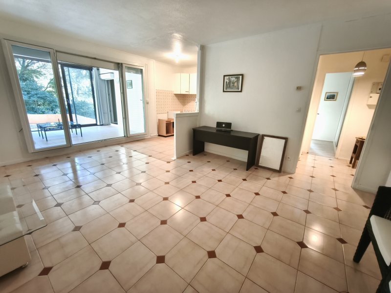 LA SEYNE - COLLINES DE TAMARIS - Rez de jardin de 78m2 composé d'un grand séjour avec cuisine ouverte équipée d'environ 30m2, de 3 belles chambres, d'une salle de bains, wc séparés. Loggia d'environ 12m2. Grande terrasse de 40m2. Ravalement de façade fait en 2023. Chaudière à gaz neuve! Un garage et une cave sont vendus avec l'appartement!