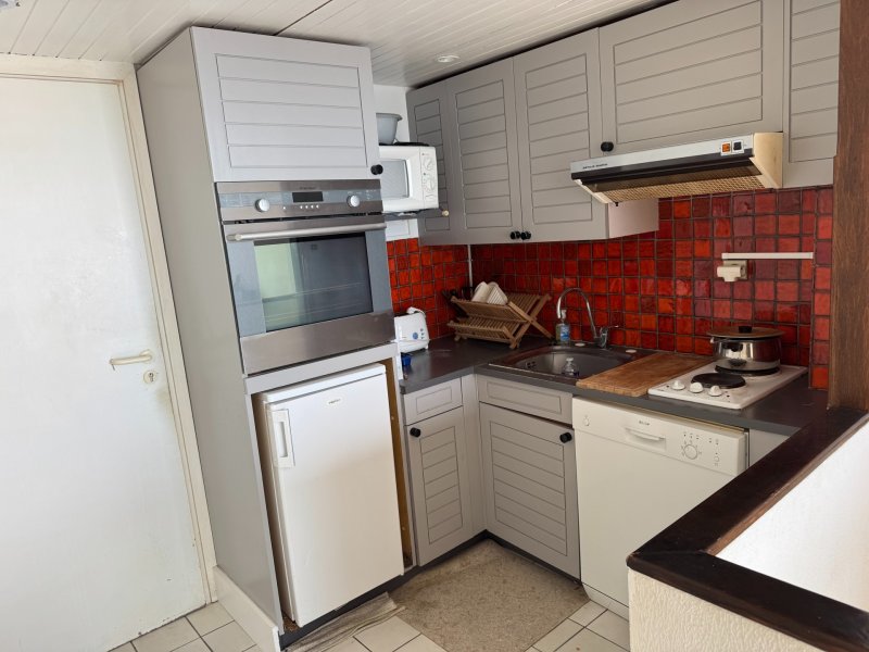 Dans une résidence parfaitement entretenue avec gardienne, il vous offre une pièce à vivre avec cuisine ouverte et vue sur mer, une chambre avec salle de douche et wc ainsi qu'une mezzanine d'une hauteur de 90 cm permettant uniquement des couchages supplémentaires.