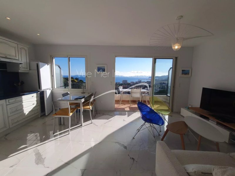 T2 de 35 m² ( + accès comble 12 m²), sur les hauteurs du Lavandou, dans petite résidence (7 appartements) calme et sécurisée ( portail, digicode), avec emplacement de parking privatif.