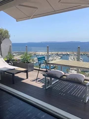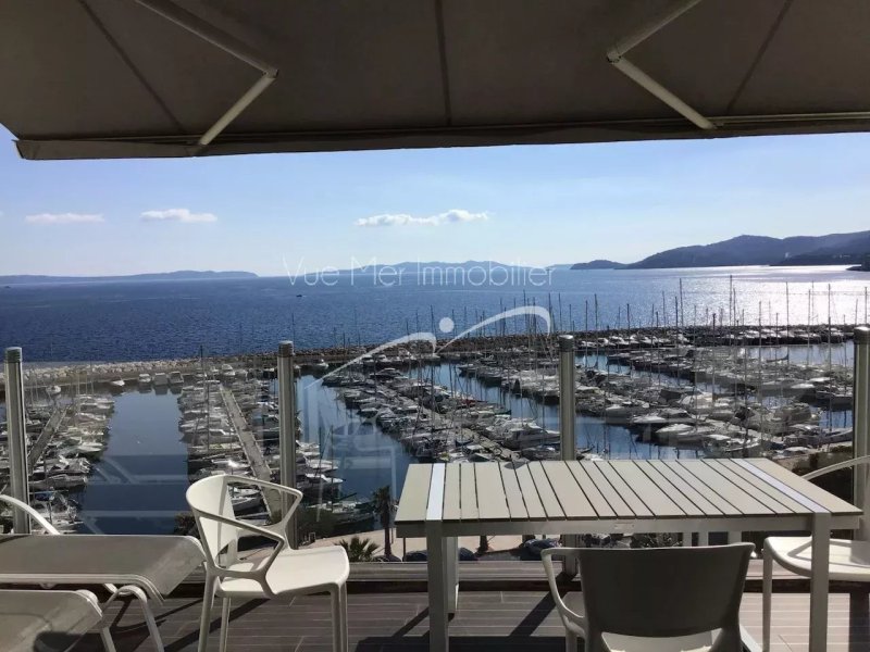 Vue Mer Immobilier vous propose cet Appartement de type T4 ( 3 chambres / 2 salles d'eau), rénové avec goût, en duplex, bénéficiant d'un espace séjour avec cuisine américaine de 43 m², et une luminosité et une vue exceptionnelles ( mer, port, plage, îles d'or et Cap Bénat).