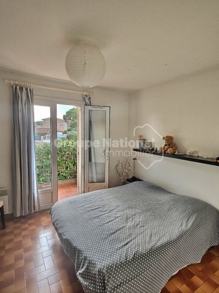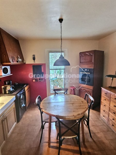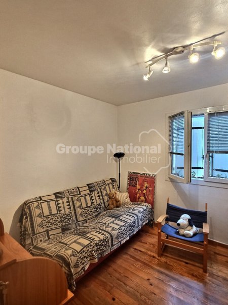 Ce bien de 62,4 m² est intégré à une grande maison en copropriété. Il comprend un séjour, une cuisine indépendante au rez-de-chaussée, deux chambres à l'étage dont une avec balcon, une salle de bains et un WC séparé.