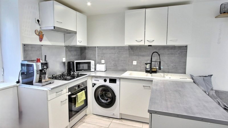 En parfait état général, il comprend une entrée sur une pièce de vie ouverte sur la cuisine aménagée. A l'étage vous trouverez deux agréables chambres avec placards et une salle d'eau avec des W.C. En sous sol de l'appartement se trouve une belle cave de 19m².