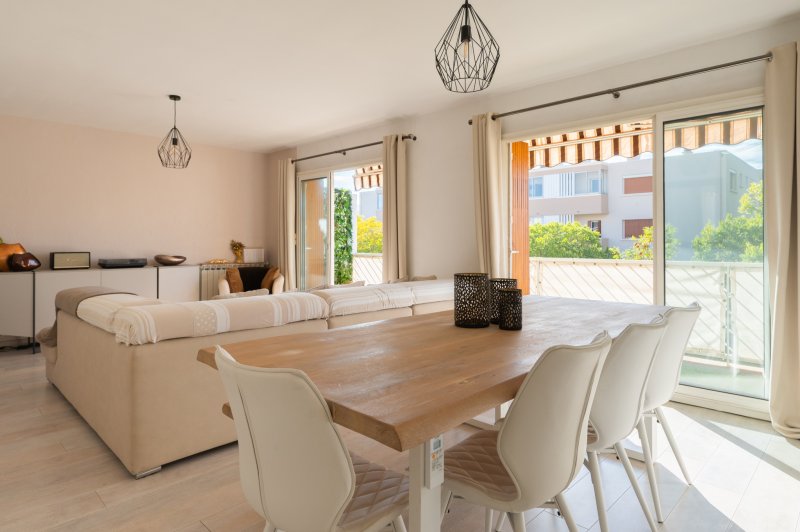Situé sur la commune recherchée de Le Pradet, au sein d'une résidence des années 70 particulièrement bien entretenue, découvrez cet appartement traversant de 90 m2, niché au 2? étage sur 3, offrant confort, luminosité et fonctionnalité. Dès l'entrée, vous serez séduit par un agencement fluide et optimisé. La pièce de vie, d'environ 30 m2, bénéficie d'une exposition plein Sud et s'ouvre sur un balcon-terrasse de 10 m2, idéal pour profiter des beaux jours. La cuisine semi-ouverte, moderne et fonctionnelle, donne accès à une loggia, parfaite pour un espace buanderie ou rangement complémentaire. Côté nuit, l'appartement propose trois chambres, avec la possibilité d'en créer une quatrième, une salle d'eau, des WC indépendants, ainsi que de nombreux rangements intégrés. L'ensemble a été rénové, dispose de la climatisation, et bénéficie de charges faibles, avec des équipements entièrement individuels, un vrai atout au quotidien. Enfin, vous profiterez d'une place de stationnement au sein d'un parking collectif sécurisé, accessible par bip, avec une place attribuée par lot principal.