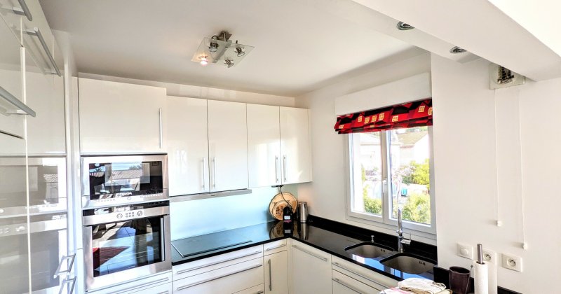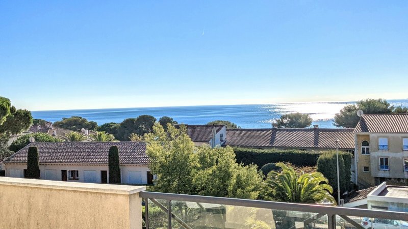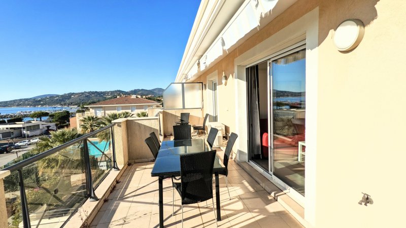 l'Agence Plane vous propose à la vente dans Résidence fermée avec piscine Bel appartement 3 pièces situé en dernier étage En plein coeur de San-Peïre les Issambres Toutes commodités à pied Très belle Vue Mer et golfe de Saint Tropez , Exposition plein Sud Séjour accès grande terrasse, cuisine ouverte aménagée , 2 chambres avec 2 salles de douches, wc indép. surface 70 m2 environ plus grande terrasse Double garage & cave. Rare à la vente !