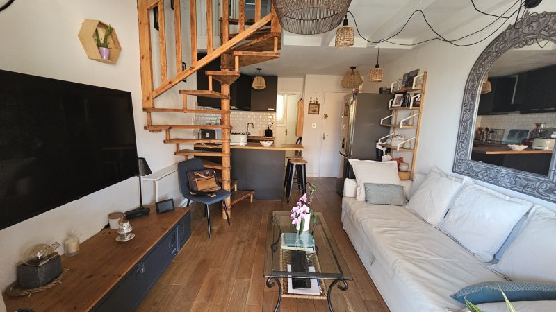 Situé dans une résidence de style provençal, à proximité des commerces de Pierreplane, du tennis et de la plage de Bandol, ce T2 mezzanine de 36.74 m2 en surface utile.Il se compose d'une entrée avec WC et placards, d'un salon avec cuisine très bien équipée, ouvrant sur une belle terrasse de 9 m2 exposée sud avec vue mer. À l'étage : une grande chambre avec dressing et salle d'eau. Nombreux rangements. Stationnement facile dans la résidence.