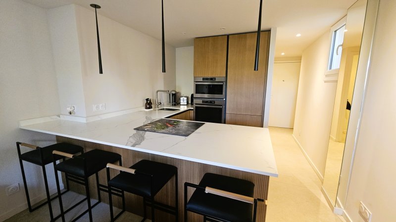 T2 entièrement rénové avec terrasse et vue mer -- Bandol Situé dans une résidence de standing parfaitement entretenue, ce superbe T2 entièrement refait à neuf offre des prestations de qualité.Il se compose d'un lumineux salon avec cuisine haut de gamme ouverte, donnant sur une agréable terrasse avec vue panoramique sur le port de Bandol.La partie nuit comprend une chambre avec sa salle d'eau attenante, ainsi qu'un WC séparé.Une cave et un parking commun complètent ce bien rare sur le secteur.