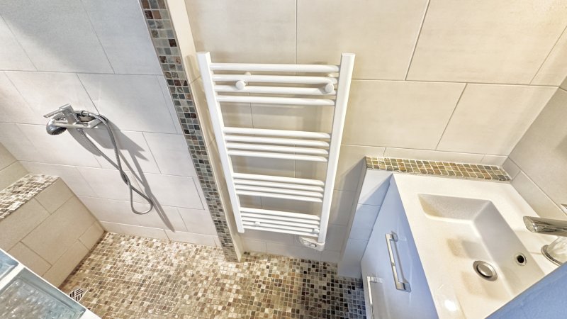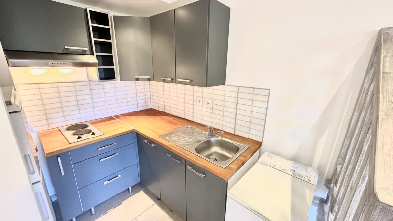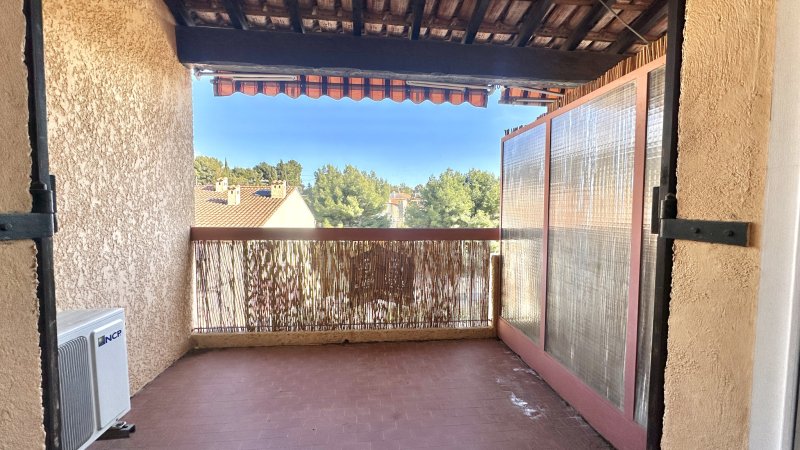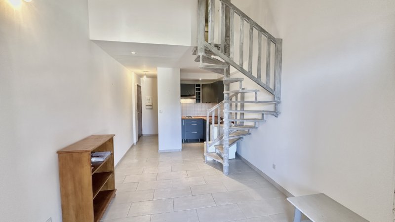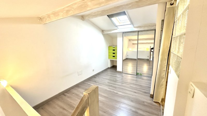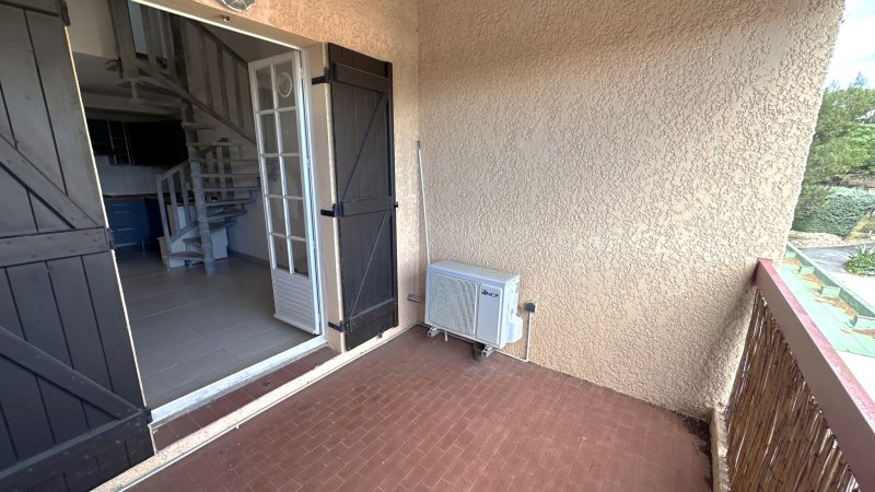 BANDOL - Appartement de type T2 situé au premier et dernier étage d'une petite résidence provençale sécurisée, au coeur d'un environnement verdoyant, à seulement 400 mètres des commerces et à 1 km de la plage du Capelan. Il se compose d'un séjour lumineux et climatisé ouvrant sur une spacieuse terrasse offrant un agréable aperçu mer, d'une kitchenette récente entièrement aménagée, ainsi que de WC indépendants. À l'étage, une mezzanine accueille une chambre avec placard et une salle d'eau attenante. Un parking collectif fermé au sein de la résidence ainsi qu'une grande cave complètent ce bien, idéal pour le stockage d'effets personnels. Si vous le souhaitez, je peux également vous proposer une version plus commerciale ou une version optimisée pour diffusion sur les portails immobiliers.