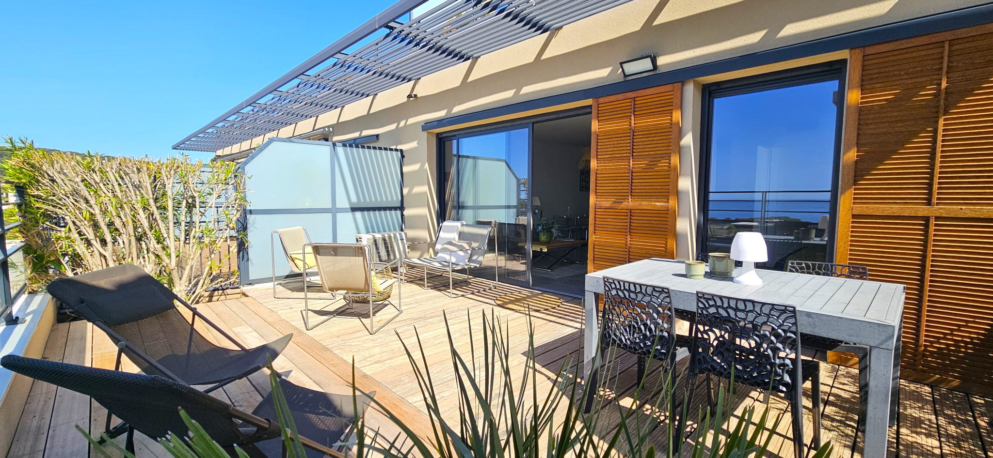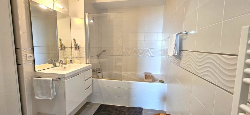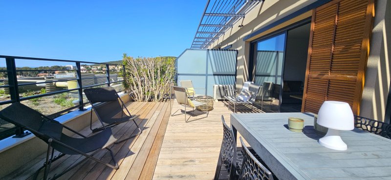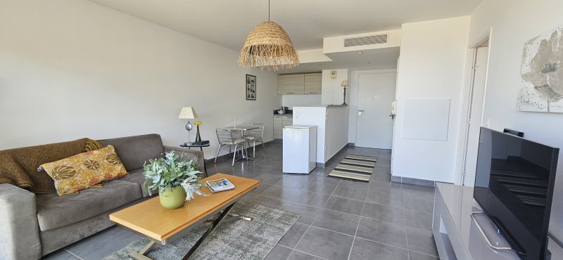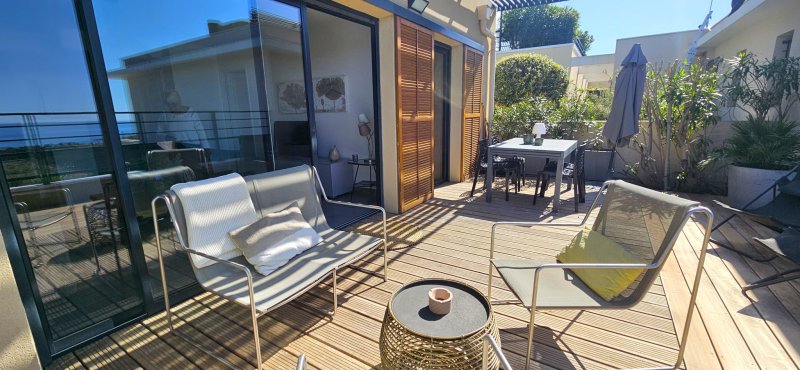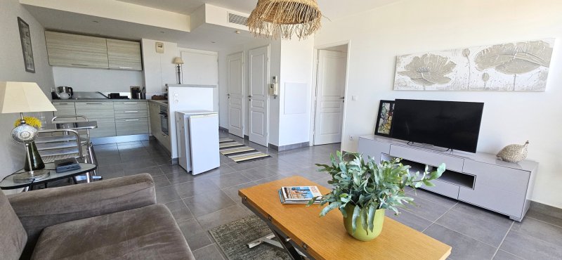 Découvrez ce magnifique appartement de type 2 alliant confort, modernité et prestations de standing. Situé dans une résidence de qualité avec ascenseur, ce bien ne nécessite aucun travaux et offre un cadre de vie idéal. Vous serez immédiatement séduit par sa grande terrasse de 32 m2, parfaite pour profiter des beaux jours avec une vue imprenable sur la mer. Entièrement climatisé, l'appartement propose des espaces optimisés avec de nombreux rangements, garantissant un quotidien pratique et agréable. La résidence dispose également d'une piscine, apportant un véritable plus pour vos moments de détente. Côté stationnement, vous bénéficiez d'une place fermée et couverte, équipée d'une prise électrique, idéale pour un véhicule électrique ou hybride. Un bien rare, prêt à vivre, qui réunit confort, élégance et qualité de vie dans un environnement privilégié.