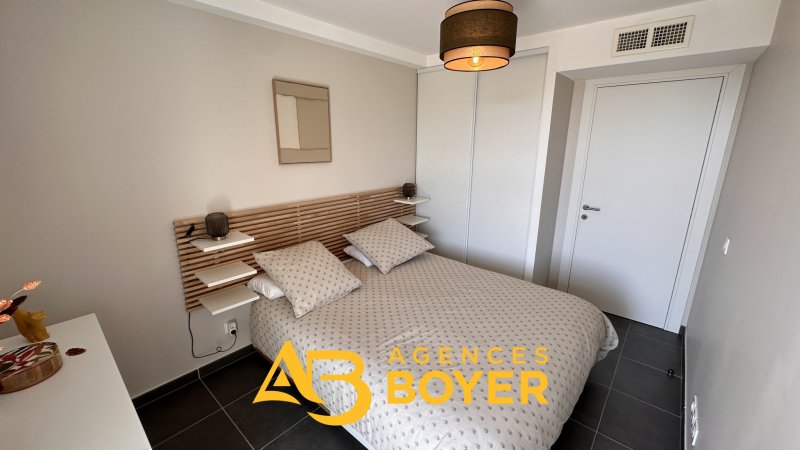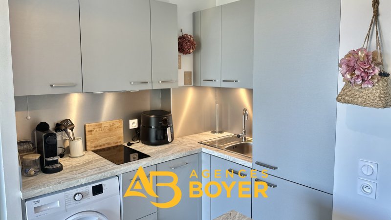 BANDOL Au sein d'une résidence intimiste de standing, édifiée en 2019, découvrez ce superbe appartement de type T2 d'environ 39 m2, bénéficiant d'un environnement privilégié. Un des atouts de ce bien réside dans sa vaste terrasse de 30 m2, exposée plein Sud, offrant une vue panoramique sur la mer et un véritable espace de vie extérieur. L'appartement vendu en l'état entièrement aménagée et meublé se compose d'un séjour lumineux avec cuisine ouverte, d'une chambre avec placard intégré, d'une salle d'eau contemporaine équipée d'une douche à l'italienne, ainsi que de WC indépendants. L'accès est facilité par un ascenseur de plain-pied. Un garage fermé de 17 m2 en sous-sol complète ce bien, assurant un stationnement sécurisé. La résidence au concept familliale, parfaitement entretenue, propose un cadre de vie agréable et verdoyant, avec notamment un terrain de pétanque à disposition des résidents.