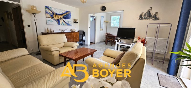 Grand appartement T3 de 83 m2 en rez-de-jardin avec terrasse couverte et jardin privatif.Situé dans une résidence sécurisée, calme et agréable, cet appartement offre de très beaux volumes et un cadre de vie paisible. Il se compose d'un vaste séjour donnant sur une terrasse couverte et un jardin, idéal pour profiter de l'extérieur en toute intimité.L'appartement dispose de deux chambres, d'une cuisine fonctionnelle et d'une salle d'eau confortable. Une cave privative est incluse et un garage peut être acquis en option. Le stationnement est aisé grâce à une parking collectif. La résidence bénéficie également d'une grande piscine et garantit une atmosphère tranquille, les locations de type Airbnb y étant interdites.Cet appartement est une belle opportunité pour ceux qui recherchent confort, espace et sérénité dans un environnement sécurisé et bien entretenu.