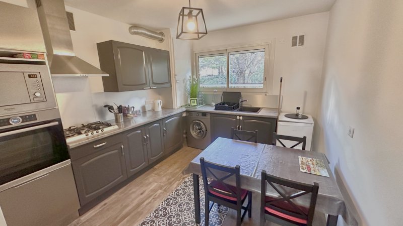 BANDOL T3 EN EXCLUSIVITÉ À quelques minutes à pied du centre-ville et en lisière immédiate du parc du Canet, cet appartement T3 traversant de 67,40 m2 (Loi Carrez) est situé au 2ème étage sur 4 d'une résidence paisible, parfaitement entretenue et sécurisée, avec parking collectif fermé, à Bandol. L'agencement est particulièrement fonctionnel : une entrée avec rangements, un séjour lumineux ouvrant sur un balcon-terrasse de plus de 10 m2 exposé Sud-Ouest, une cuisine indépendante entièrement aménagée et équipée, deux chambres, une salle de bains, des WC indépendants ainsi qu'un espace dressing. L'appartement dispose d'une climatisation réversible, d'une porte blindée 5 points, toutes menuiseries en double vitrage équipées de moustiquaires et de volets roulants électriques. Il se présente en excellent état général et ne nécessite aucun travaux. Une grande cave en rez-de-chaussée ( de 6.32m2) complète le bien, idéale pour le rangement de vélos ou autres effets personnels, à l'abri de l'humidité. Résidence fermée avec stationnement collectif sécurisé.