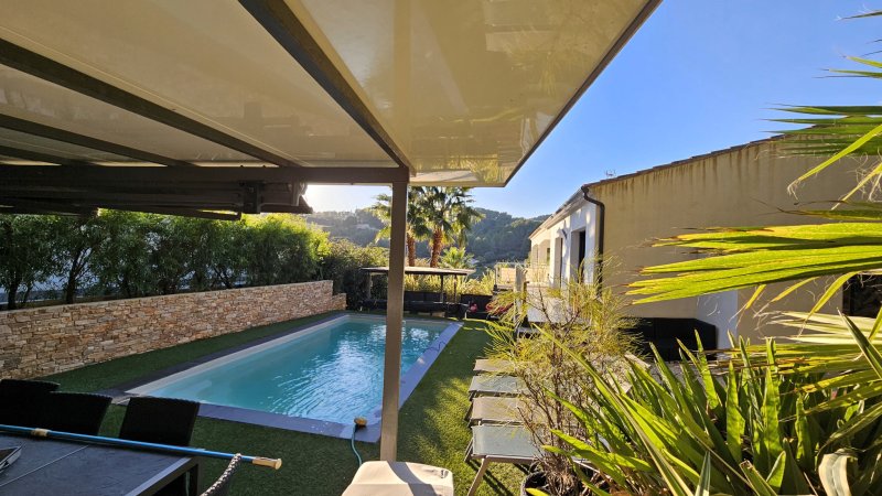 Villa-Appartement, située dans un quartier très calme sur 500m2 de terrain privé, sans vis à vis à proximité du golf de Frégate et de la mer, cette villa-appartement se trouve dans une petite copropriété de deux lots distincts, sans vis-à-vis, offrant un cadre paisible et privilégié.La propriété comprend :Un salon lumineux ouvrant sur la campagne environnante, idéal pour se détendre et profiter du calme.De nombreuses terrasses, un terrain de boules, un pool-house, et une piscine chauffée pour des moments de convivialité.Dans la maison principale :Un spacieux séjour de 70 m2 avec une cuisine aménagée et équipée.Quatre chambres, dont une suite parentale avec salle d'eau privative, une salle de bains supplémentaire, une salle d'eau et deux WC.Les équipements incluent :Un garage, plusieurs places de parking, et une climatisation complète.L'eau du canal de Provence pour l'arrosage et l'entretien des extérieurs.Un bien rare offrant un véritable havre de paix à deux pas des commodités et des loisirs.