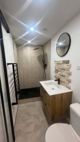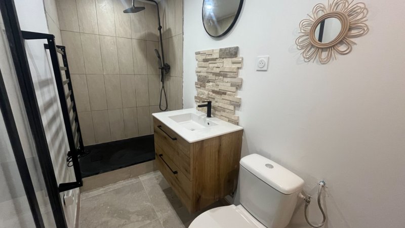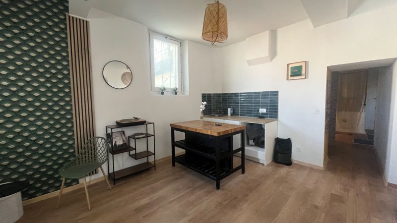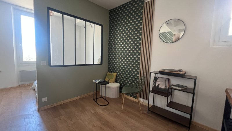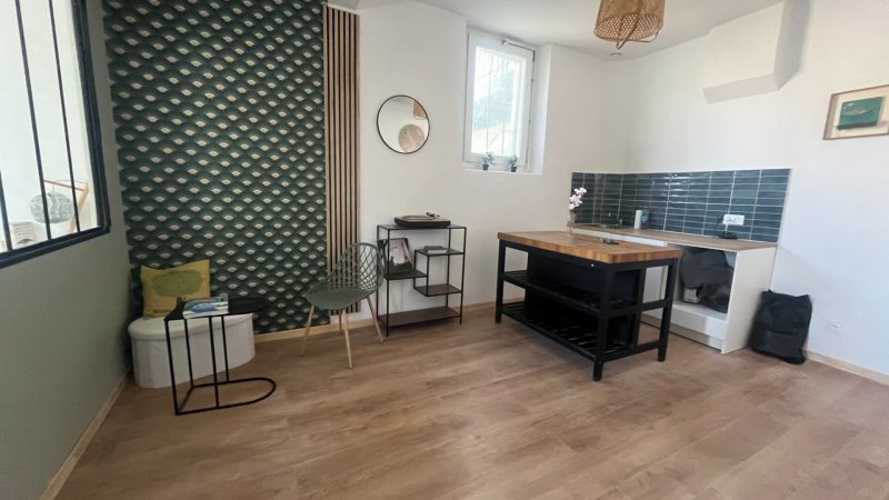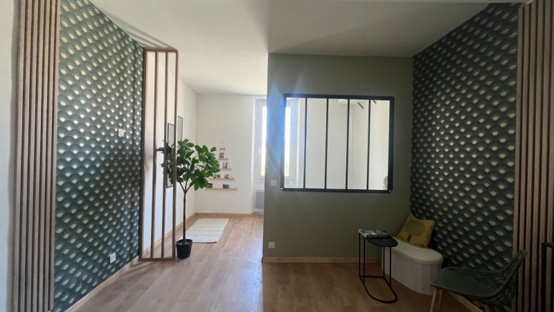 À vendre : agréable appartement 2 pièces de 37 m² entièrement rénové avec goût, situé au 1er étage d'un immeuble à Nans-les-Pins.