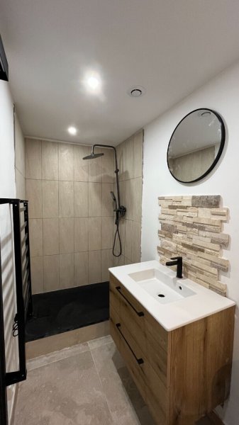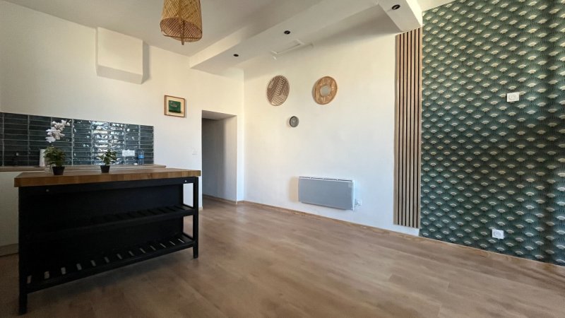 À vendre : agréable appartement 2 pièces de 37 m² entièrement rénové avec goût, situé au 1er étage d'un immeuble à Nans-les-Pins.