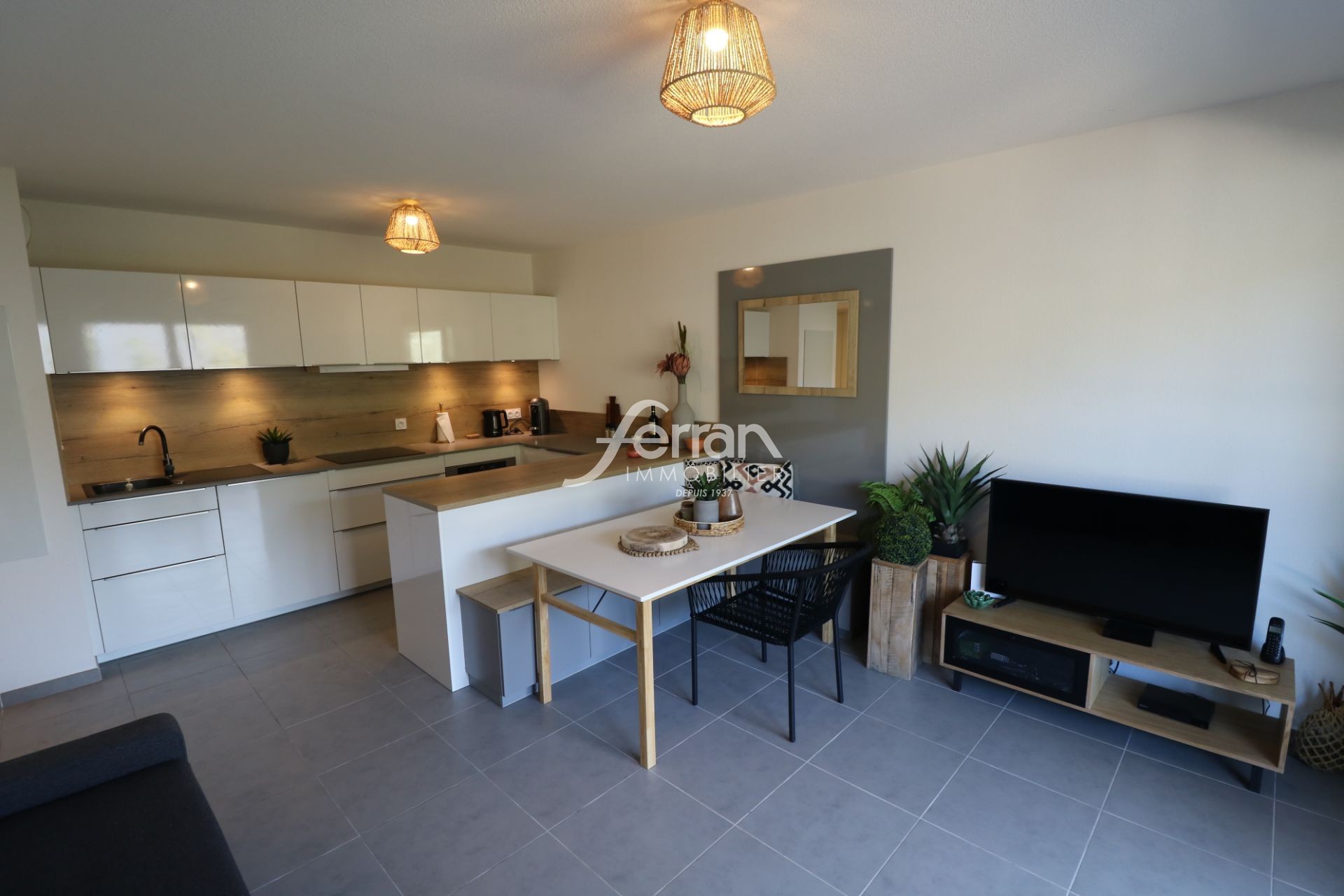 Grand 2 pièces de 50 m² situé au sein d'une petite résidence au calme absolu, tout en étant à proximité immédiate de tous les commerces. L'appartement se compose d'une grande pièce à vivre avec cuisine et cellier ouverts donnant sur une belle terrasse et un jardin. Il dispose également d'une chambre, d'une salle d'eau et d'un WC.
