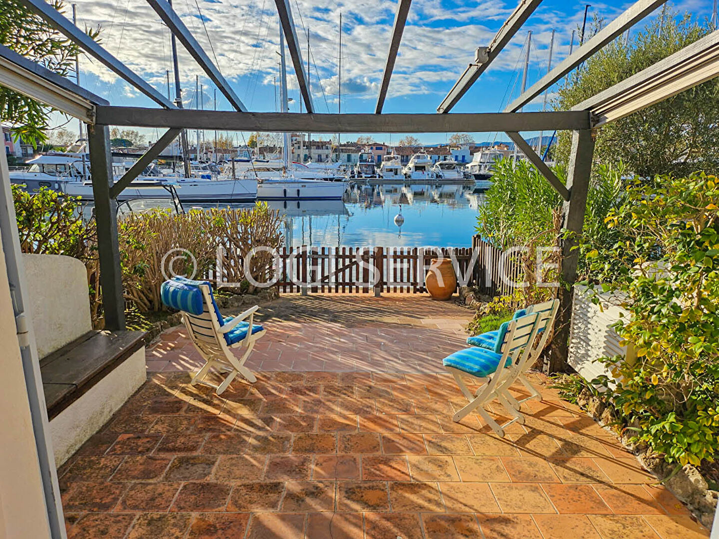 Terrasse couverte avec vue sur le canal