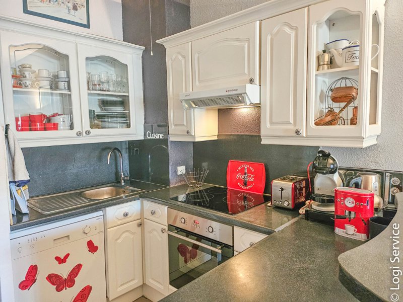 cuisine-bar aménagée ouverte sur le séjour.