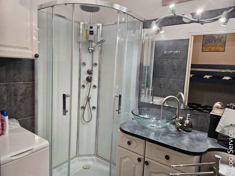 Entrée avec coin repos, une salle de douches avec wc,