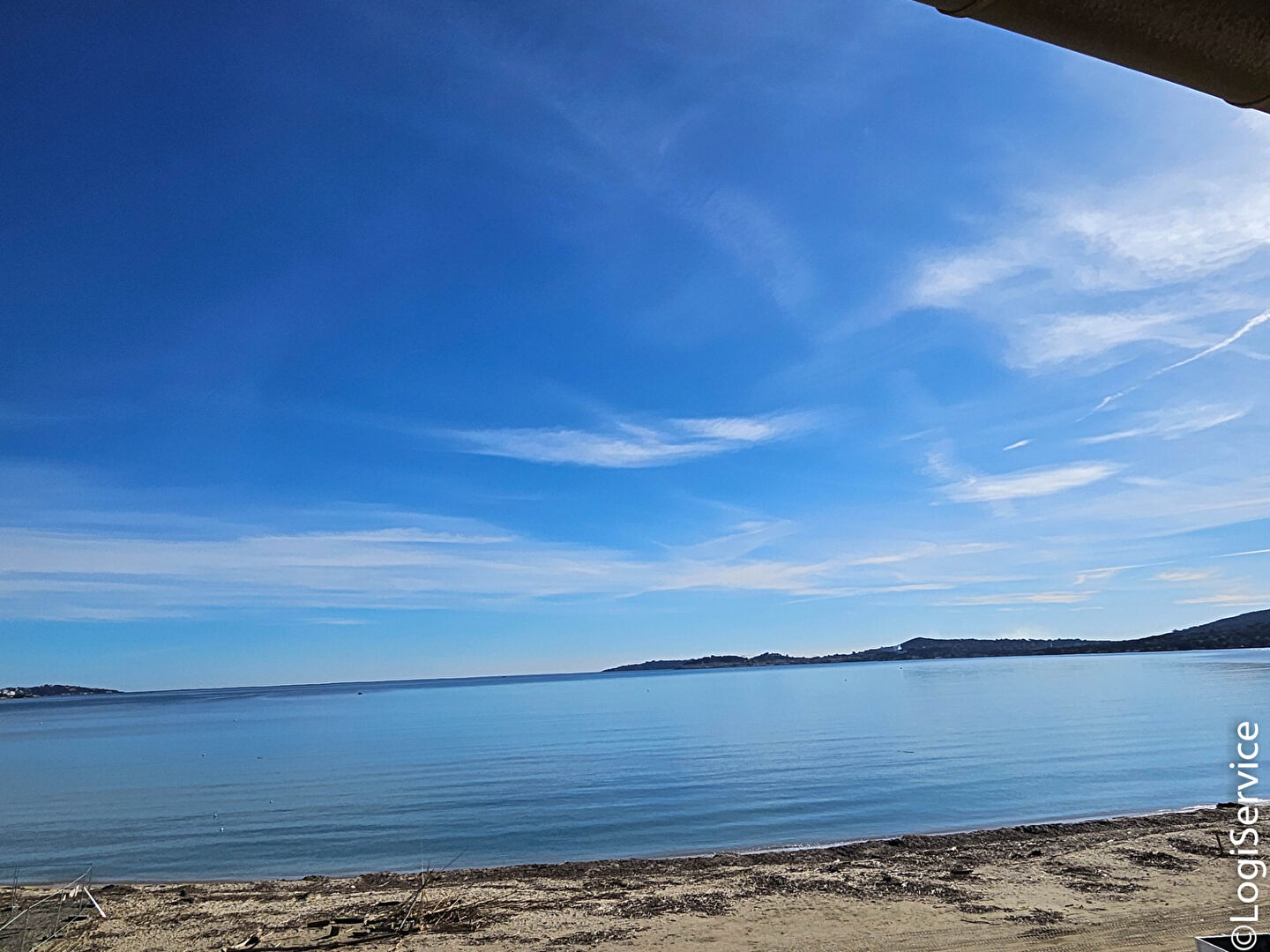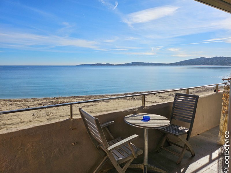 Au 2° et dernier étage de cet immeuble sur plage, un grand et lumineux appartement , traversant, avec une vue à vous couper le souffle sur le Golfe de St Tropez depuis la terrasse et vue sur les canaux de Port Grimaud depuis la cuisine .