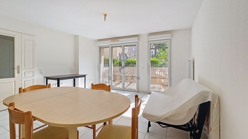 Il se compose d'un hall d'entrée avec placard, d'une salle d'eau fonctionnelle avec WC et rangements, d'une chambre lumineuse exposée plein sud avec placard intégré, et d'un séjour avec cuisine ouverte, baigné de soleil grâce à son exposition sud. Le tout prolongé par une belle terrasse d'environ 8 m², idéale pour profiter des beaux jours.