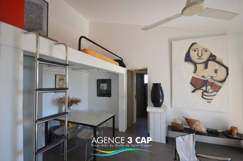 EXCUSIVITE - Situé dans une copropriété à proximité du centre du village de Ramatuelle, ce bel appartement offre une jolie vue sur le village. Offrant une surface de 54m2, il comprend une entrée, un vaste séjour avec une mezzanine accueillant un couchage double, une cuisine séparée, une grande chambre avec belle hauteur sous plafond, une salle de bains et un WC indépendant. L'appartement est orienté sud et dispose de larges fenêtres offrant une très agréable luminosité dans toutes les pièces. Ce bien bénéficie d'une cave en rez-de-chaussée, une place de parking privative et local vélos commun. Il est situé au 3ème étage sans ascenseur. Secteur proche tous commerces et commodités !