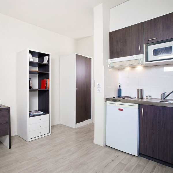 La résidence DROUET D'ERLON accueille les étudiants dans des appartements individuels. Elle offre tout le confort nécessaire avec des appartements meublés et équipés avec notamment un espace cuisine (plaques électriques, réfrigérateur, four micro-ondes...). Les résidents pourront profiter