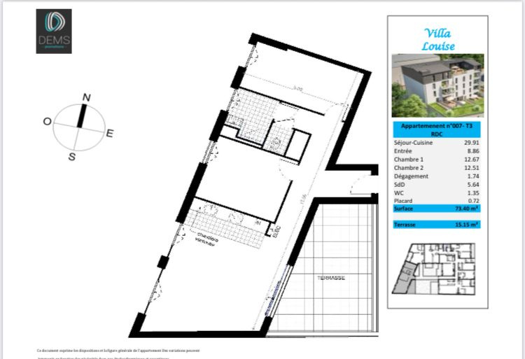 Dechatouville immobilier, vous propose à la vente ce superbe T3 neuf en rdc. ( D'autres appartements en étage et de de même type sont également disponibles Idéalement situé, au coeur du quartier Pommery, secteur chic et dynamique, l'appartement bénéficie d'un environnement privilégié, proche des commerces, des écoles et transports. Situé à deux pas de la prestigieuse maison de Champagne Ruinard et du domaine Vranken Pommery. Découvrez au sein de la résidence neuve, de standing, Villa Louise, ce magnifique T3 il se compose d'un vaste séjour-salle à manger avec cuisine ouverte donnant sur une très belle terrasse pour profiter des beaux jours et apprécier de bons moments en famille ou entre amis, un couloir dessert ensuite une partie comprenant deux belles chambres spacieuses, une salle de bain et un wc. Soyez les premiers à vivre dans cet appartement qui vous comblera Une visite s'impose ! Venez découvrir sans tarder ce bien d'exception 297000 EUR Frais de notaire réduits