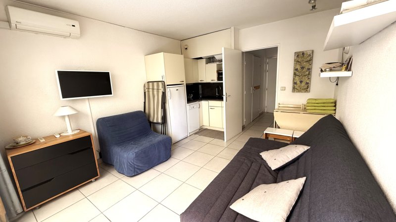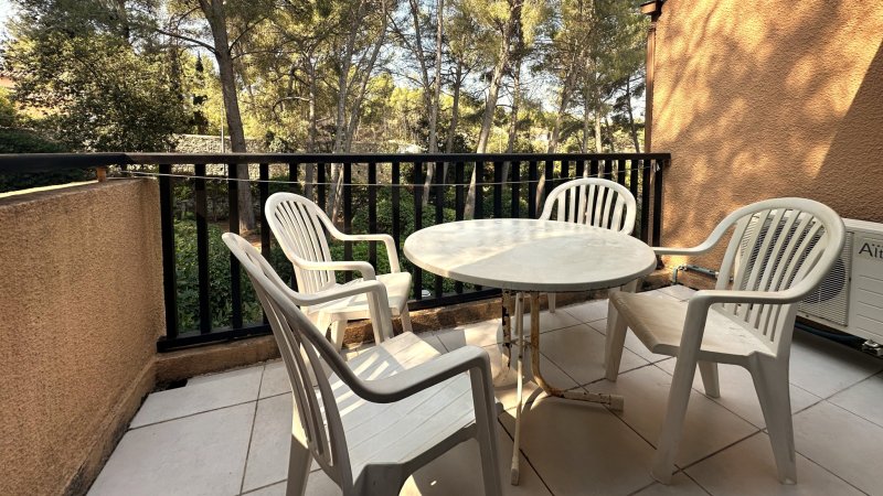 Entre Bandol et Sanary, proche des plages de sable, dans une très jolie résidence de vacances avec piscine, aire de jeux pour enfants, boulodrome, beau studio cabine de 23m2 (4 couchages) avec une terrasse en parfait état. Dans un cadre pinède, il est composé d'un coin nuit, un séjour donnant sur la terrasse, salle de bains, penderie, placard, parking privatif protégé, local vélos. Un très bel espace de vie pour un studio. Idéal pour la location saisonnière et les vacances. Charges de copropriété incluant également les charges privatives (eau et électricité).