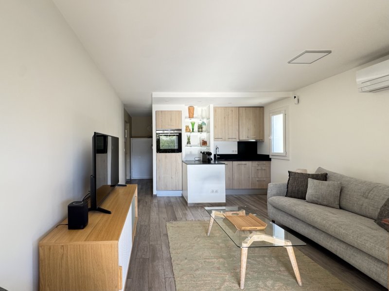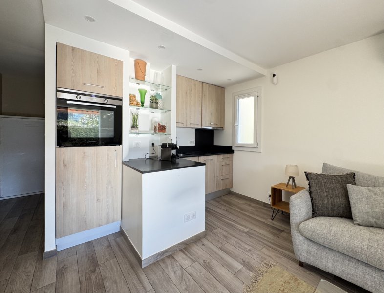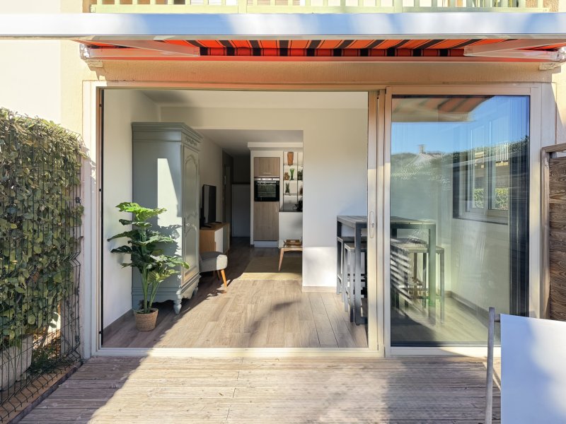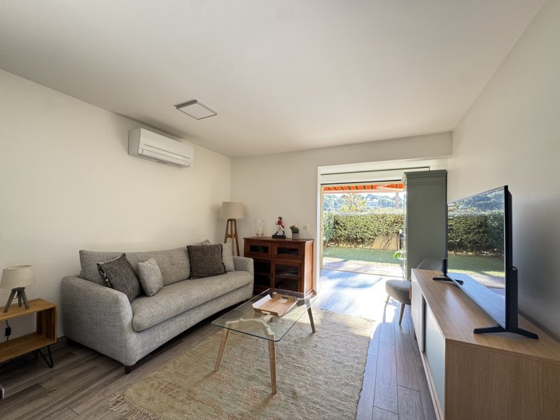 Situé au coeur du très convoité quartier de Portissol, à seulement 2 minutes à pied de la plage et 10 minutes du port de Sanary, cet appartement en rez-de-jardin représente une opportunité rare sur le marché. Caractéristiques principales : surface habitable 34 m2, jardin privatif exposition plein sud, une cave de 9 m2. Espace intérieur, entrée raffinée avec coin nuit et armoire intégrée dissimulant un couchage haut de gamme 140 × 200 cm avec vrai sommier, ouverture automatique, solution esthétique et ingénieuse, salon lumineux ouvrant sur le jardin, cuisine contemporaine entièrement équipée, coin repas confortable, salle d'eau premium avec wc et douche à l'italienne aux finitions irréprochables. Espace extérieur, terrasse accueillantes, gazon synthétique haut de gamme, point d'eau, intimité préservée. Prestations et technologies, climatisation réversible, stores électriques Somfy, cumulus connecté, pilotage complet via smartphone (climatisation, stores, etc.), accès fibre optique, rénovation intégrale, matériaux sélectionnés avec soin.