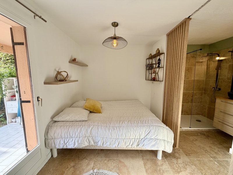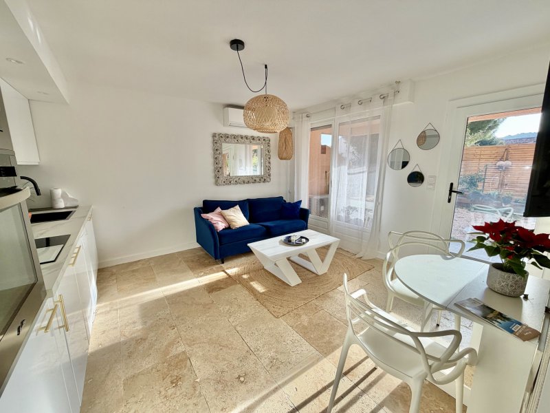 Sanary-sur-Mer - Découvrez cet appartement T2 en rez-de-jardin entièrement rénové dans une résidence sécurisée avec piscine et parking collectif. Vous bénéficiez d'une entrée privative sur un jardin privatif de 37m2 et d'une terrasse couverte. Vous entrez dans une pièce de vie ouverte avec une cuisine entièrement équipée et meublée. Dans la continuité, on retrouve des Wc indépendants ainsi qu'une chambre avec accès sur l'extérieur, son dressing et sa salle d'eau. Tout confort, il bénéficie du double vitrage, de la climatisation réversible, de la fibre optique... Contact direct : Théo Nobili - 07 60 07 56 47