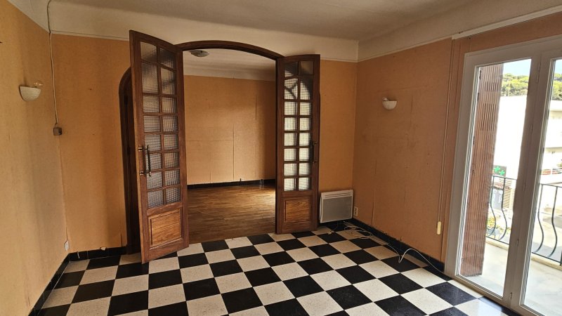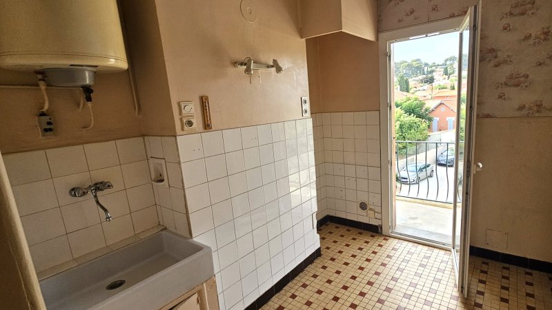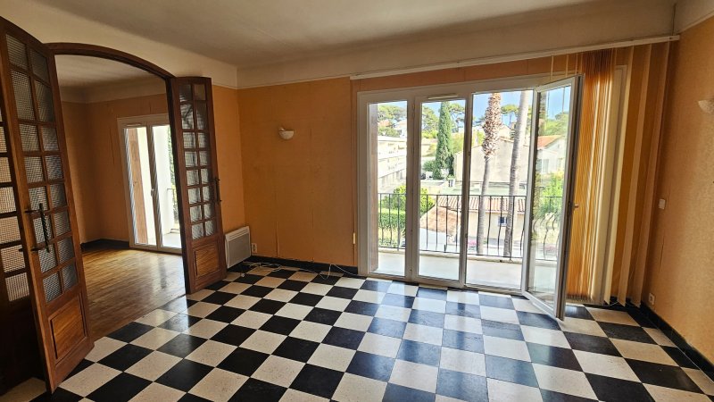 Sanary-sur-Mer - Exclusivité, Résidence Les Marguerites, à mi-chemin entre le centre-ville et la plage de Portissol. Rare à la vente, appartement de type F3 situé au 2? et dernier étage d'une petite copropriété. D'une surface de 65 m2, il se compose d'une entrée avec placard, d'un séjour ouvrant sur un balcon exposé sud, d'une cuisine donnant sur un balcon au nord, de deux chambres avec parquet massif, d'une salle d'eau et d'un WC séparé. Appartement traversant, lumineux et bien exposé. Une grande cave de 16 m2 ainsi qu'un parking collectif complètent ce bien. Double vitrage récent, installation électrique conforme, gaz aux normes, salle d'eau en bon état. Des travaux de décoration et de modernisation sont à prévoir (peintures, cuisine, carrelages, rangements), mais l'emplacement et le potentiel sont exceptionnels. Charges faibles, copropriété calme, proche des commerces, du port et de la plage de Portissol accessibles à pied.