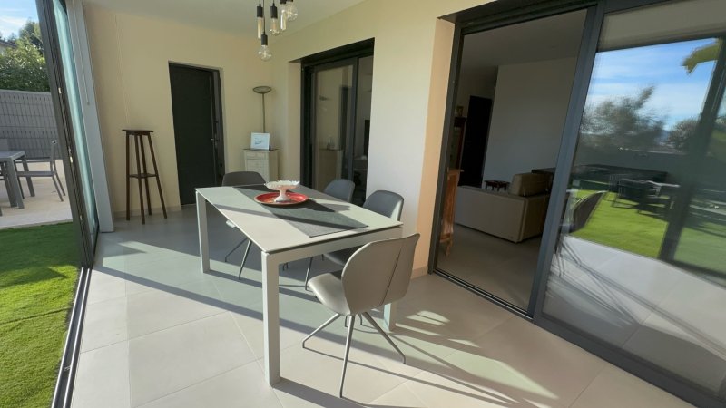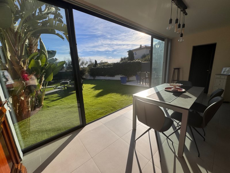 Dans une résidence intimiste de grand standing, découvrez ce superbe appartement T3 de 54 m2 habitables, agrémenté d'une véranda sécurisée de 16 m2 ouvrant sur un magnifique jardin privatif de 153 m2 exposé plein sud. L'entrée dispose de placards intégrés, la cuisine aménagée et équipée est ouverte sur un séjour lumineux. L'espace nuit comprend deux chambres avec rangements, une salle d'eau moderne et des toilettes séparées. Un garage avec rangements, une buanderie attenante ainsi qu'une place de parking privée complètent ce bien rare. Prestations de qualité ( climatisation réversible, alarme intérieur extérieur , arrosage automatique , volets éléctriques ) dans environnement calme et sécurisé, idéal pour profiter pleinement de la douceur de vivre à Sanary. Charges mensuelles : 15 EUR Taxe foncière : 1419 EUR DPE / C Contacter Aurélie NOARI : 06 83 23 11 04