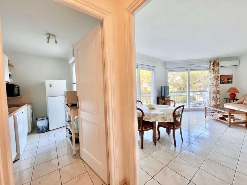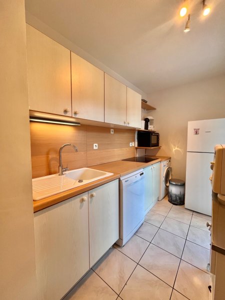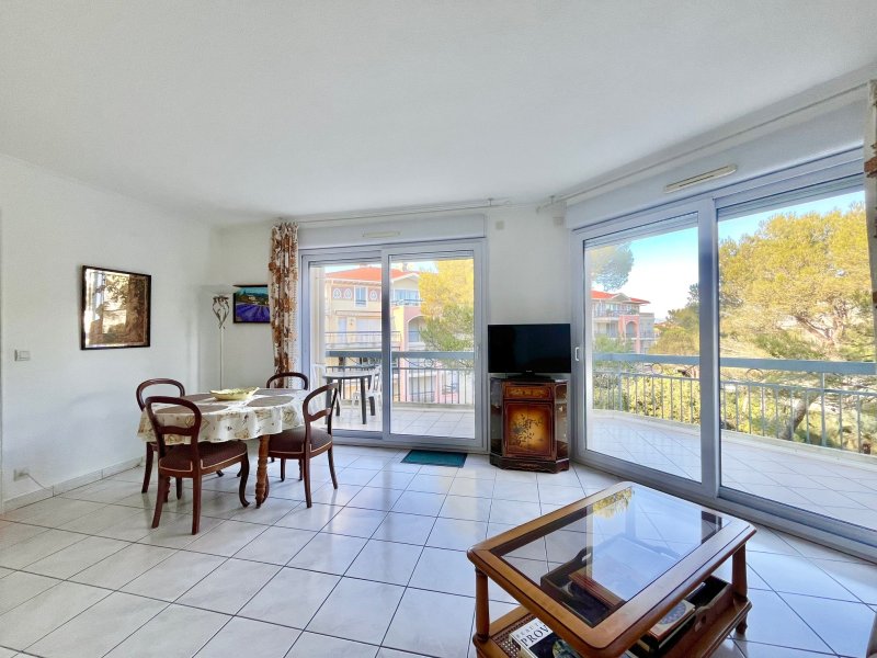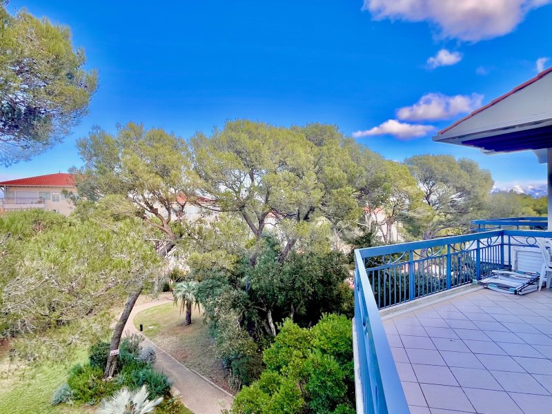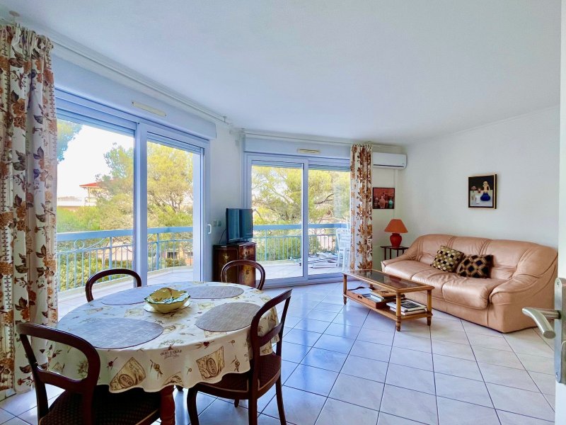 Dans une résidence de standing avec piscine, à proximité de tous commerces et de la mer, Confortable appartement de 2 pièces situé au 4ème étage avec ascenseur, vue panoramique sur le Parc et se composant comme suit, une entrée, cuisine équipée, séjour (Poss. cuisine américaine), un couloir, une chambre, salle de bains et wc. Vaste terrasse avec aperçu mer. Cave et parking sécurisé. RARE à la vente !