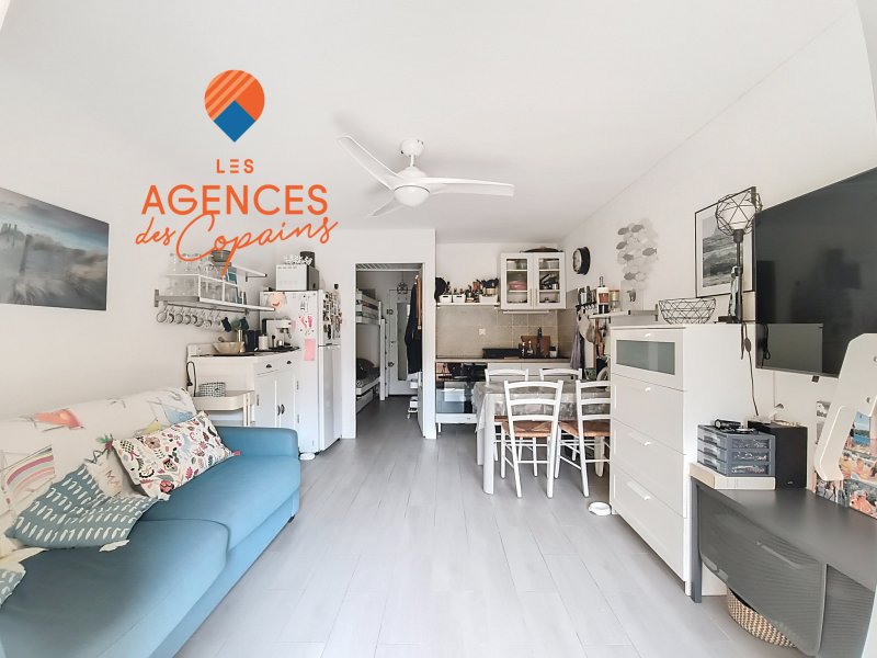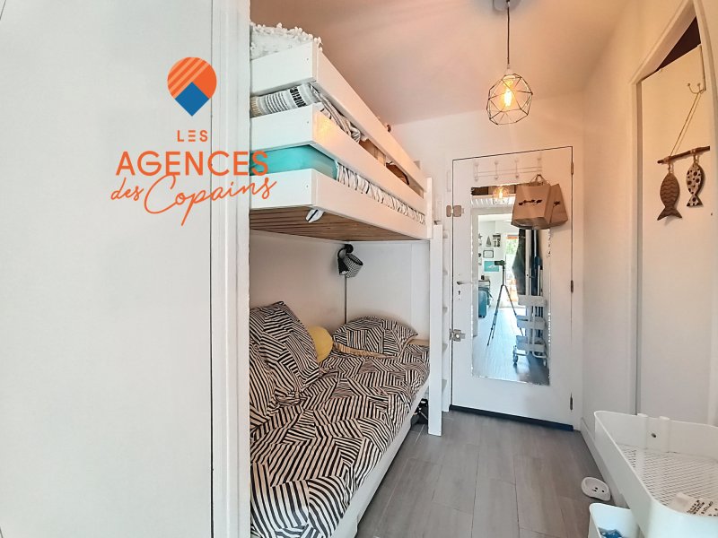 Proche de la plage et des commerces, au calme, Studio avec loggia en parfait état. Séjour avec coin cuisine donnant sur loggia ensoleillée, coint nuit avec lits superposés. Cellier. Idéal pour les vacances ou locatif.