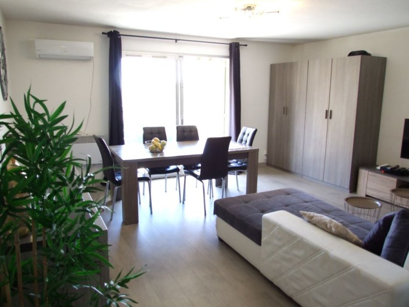 Dans résidence fermée avec piscine et tennis à proximité immédiate des commerces et à seulement 1,5 kms du centre ville, très agréable appartement 2 pièces au calme de 46 m2 + terrasse de 7 m2 exposition Ouest situé au 2ème étage avec vue dégagée. Entrée et dégagement avec placard, séjour avec climatisation réversible, cuisine équipée (possiblité cuisine américaine sur séjour), une chambre avec placard, une salle d'eau, un wc suspendu indépendant, une cave et un garage. Nombreux parkings collectifs dans la résidence. Charges de copropriété : 1338 EUR/an + Fond de travaux ALUR : 68 EUR/an