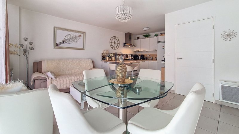 L'appartement se compose d'un séjour lumineux, d'une cuisine ouverte, d'une chambre spacieuse, d'une salle d'eau et de WC indépendants.